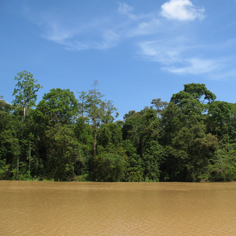 although there are many palm tree plantations joining the river in some other areas the rainforest is on both sides , the places to anchor, to see the animals especially the bird, and to hear the sound of the rainforest.